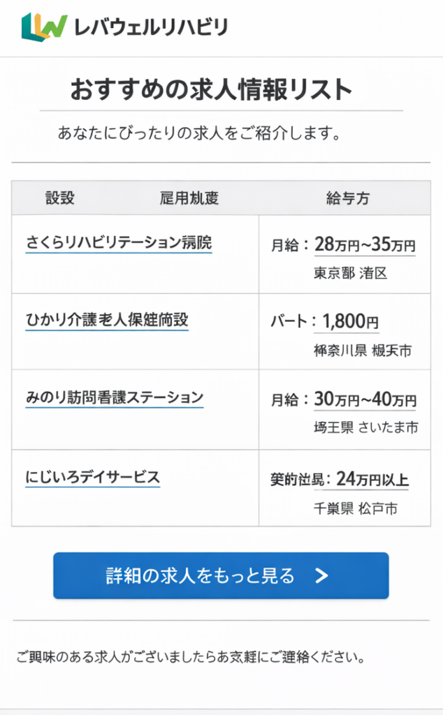 面談が終わると、数日以内に担当者から求人が届きます。