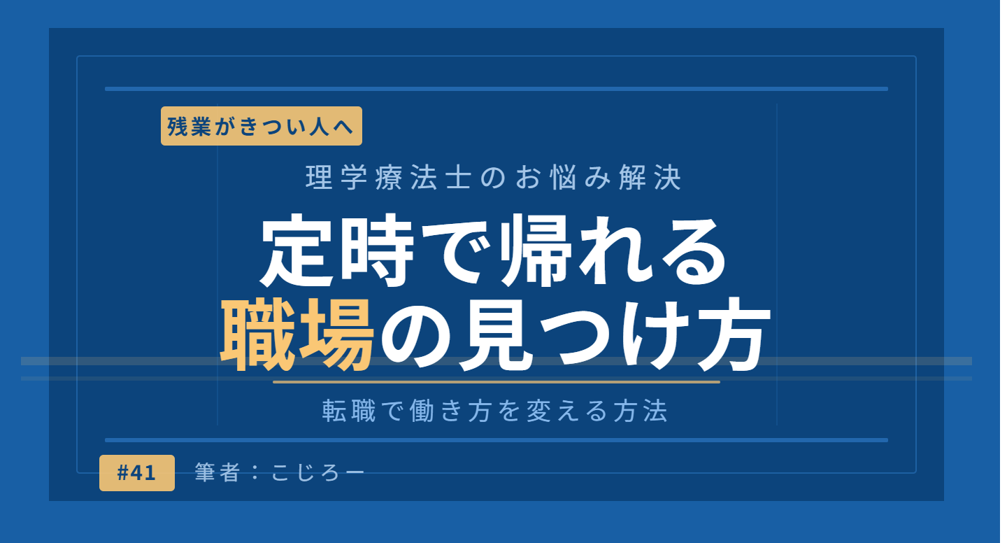 今回は「残業がきつくて限界だけど、どうやって転職先を選べばいいかわからない」という理学療法士さんに向けて、定時で帰れる職場の見つけ方を書いていきます。