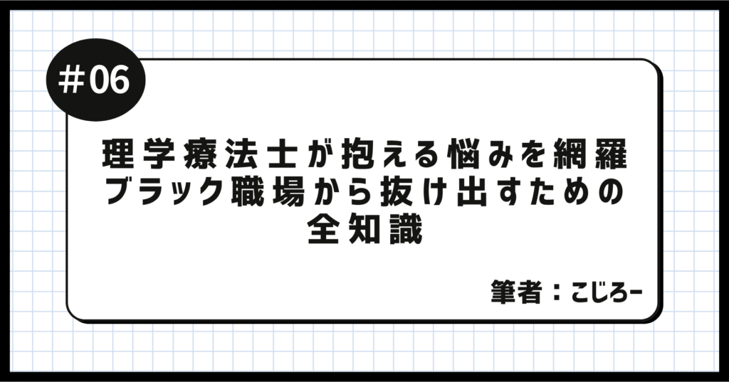 こんにちは、こじろーです。前回記事では、 という記事を書きました。 今回のテーマは「ブラック職場」について書いていきたいと思います。 「残業が多すぎて体がもたない」 「サービス残業が当たり前になっている」 「上司のパワハラがひどい」 理学療法... -