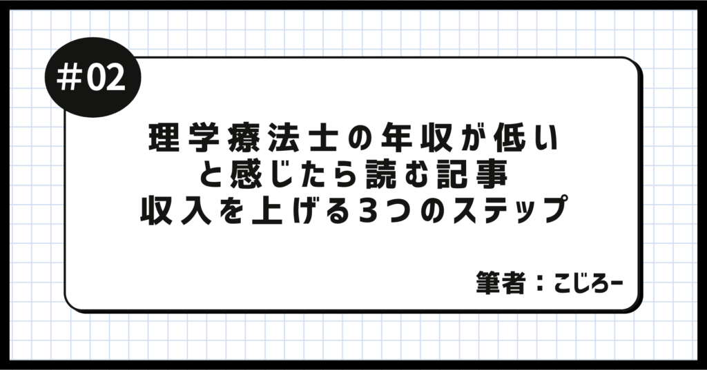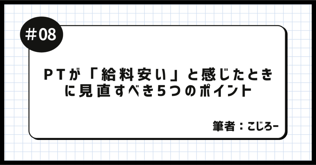 こんにちは! 理学療法士10年目のこじろーです。 前回記事では、 という記事を書きました。 今日は「PTの給料、正直しんどい…」と感じているあなたに、ぜひ読んでほしい記事です。 ぼく自身も新人のころからずっと「こんなに頑張っているのに、なんで?」... -